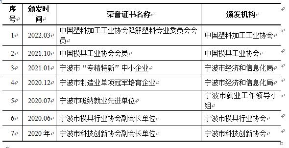 本公司获得的与技术、研发相关的主要奖项或成果如下表所示: