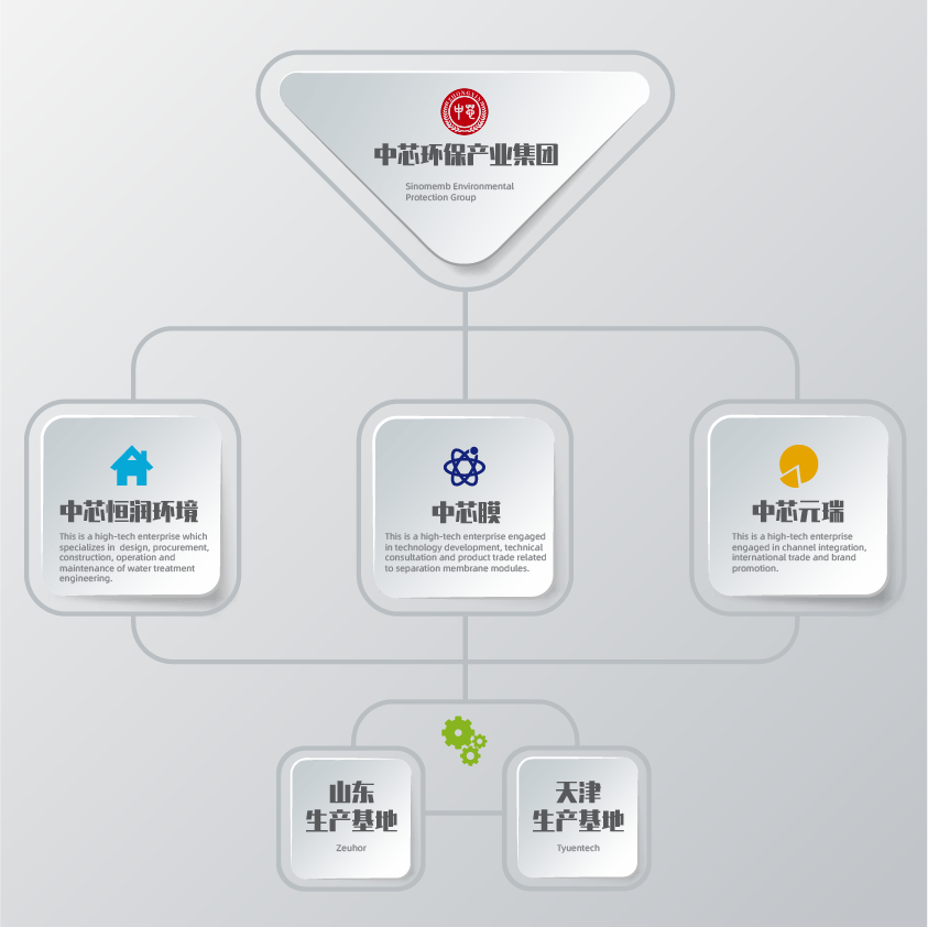 中芯环保产业集团,是以膜分离技术为核心的高科技企业集团,始创于2012年,从最初的水处理膜产品开发、制造商,逐步发展构建了高端分离膜材料、环保工程装备、环保科技服务三大业务版块,成为集分离膜材料研发、生产、膜装备制造及工程运维于一体的综合性环保集团,是全球一流的膜系统解决方案提供商。