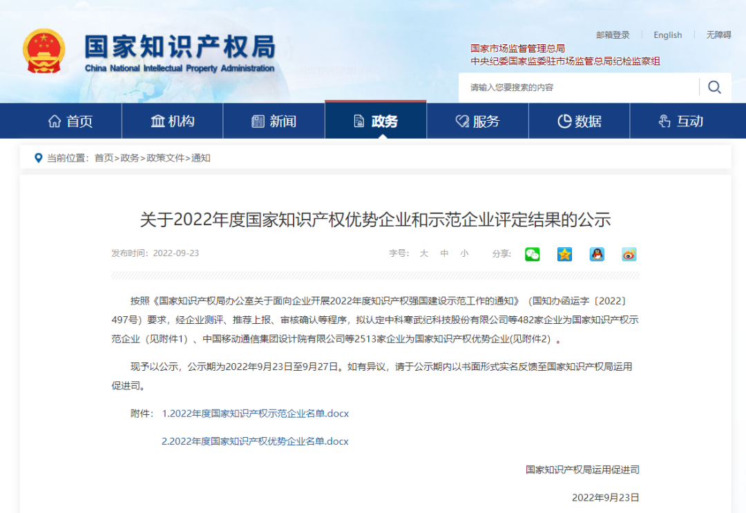 近日,国家知识产权局对“2022年度国家知识产权优势企业和示范企业”评定结果进行了公示。经企业测评、推荐上报、省市专家审核确认等严格筛选程序,三友环保凭借卓越的研发创新实力、健全的知识产权管理体系成功入选,被评为2022年度国家知识产权优势企业