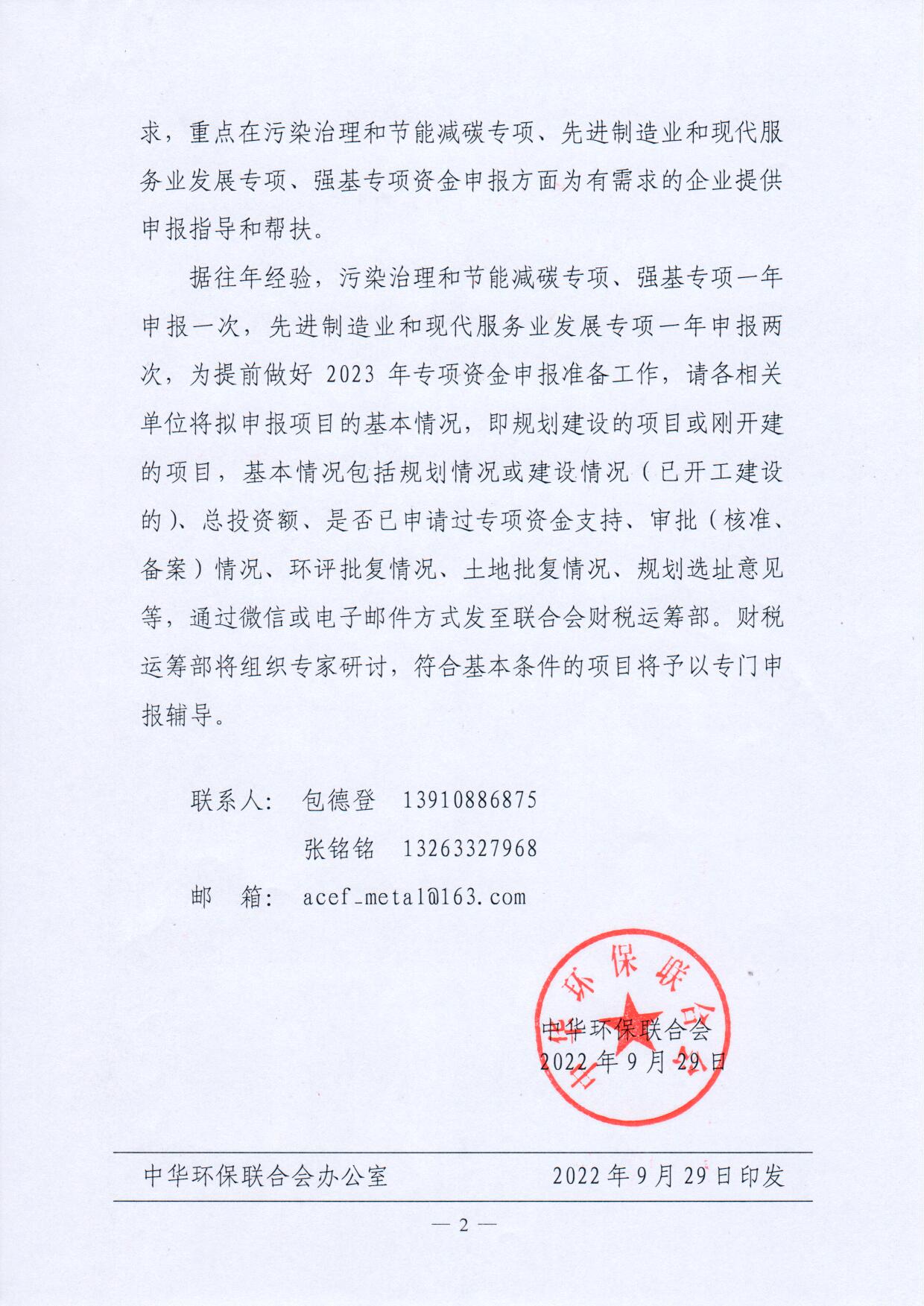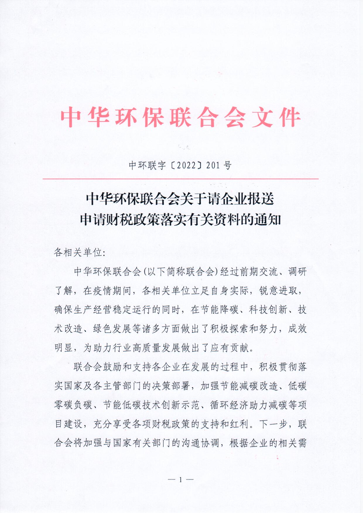 中华环保联合会关于请企业报送申请财税政策落实有关资料的通知