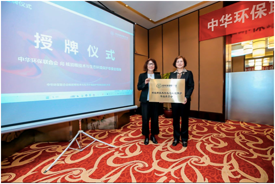 中华环保联合会副主席兼秘书长谢玉红向核能核技术与生态环境保护专委会授牌