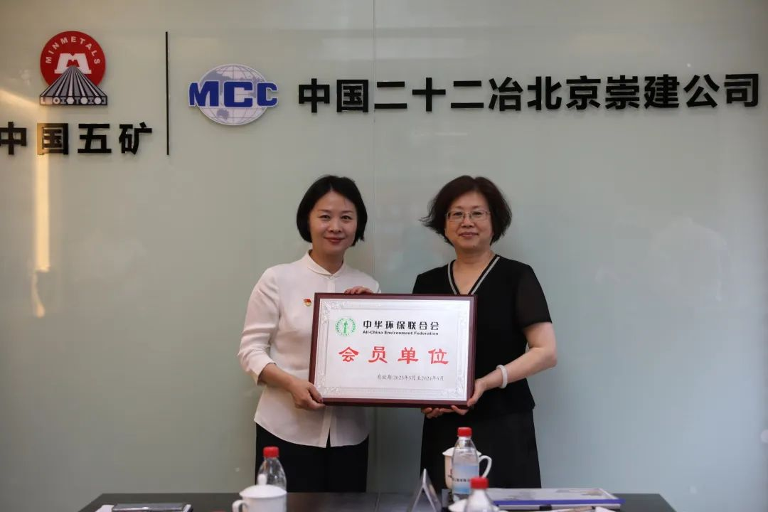 6月19日,中华环保联合会副主席兼秘书长谢玉红一行来到中国二十二冶集团北京崇建公司,授予中国二十二冶集团成为中华环保联合会会员单位并颁发证书。