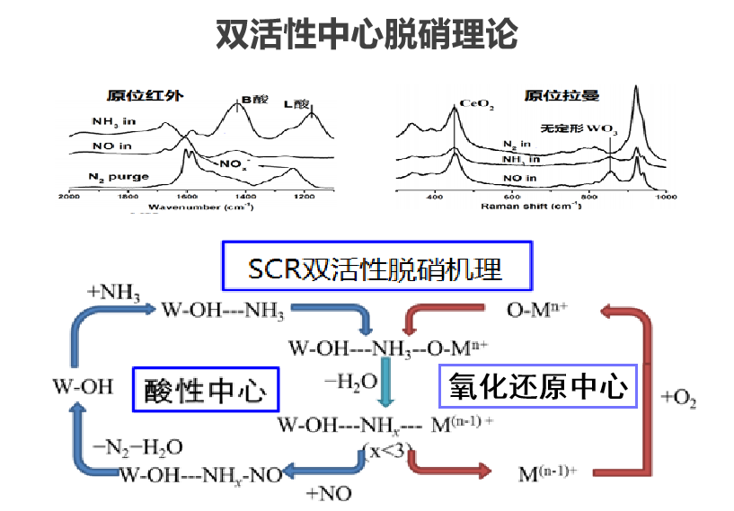 ◆ 提出双活性中心脱硝理论,其中氧化还原性是保证低温活性的关键。