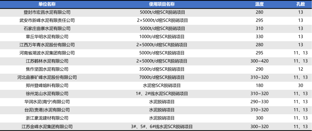 ■ 孔数为18~35,主要针对烟气含尘量中等的脱硝工程设计,适用于钢铁烧结、焦化、化工、煤电、工业硅、生物质发电、碳素、金属冶炼等行业。