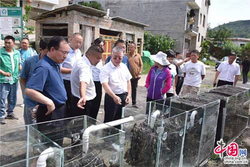 走进一户养猪的村民家里,可以看到畜禽粪污处理池,通过“碳综合无动力分散式污水处理系统”,将生产污水进行生态有效的处理。猪圈后是一小块菜地,种植的有辣椒、南瓜等作物,生产污水经过处理后用作菜地的浇灌,生态经济效益十分明显。“以前,因为没有污水处理系统与排水渠道,生活污水生产废水排放比较随意,不仅环境差还影响身体健康。建了污水处理设施后,生活方便多了,此前脏乱差的生活环境得到了巨大改善,我们的心情每天都是舒畅的,”村民笑容满面的介绍着他家的情况。