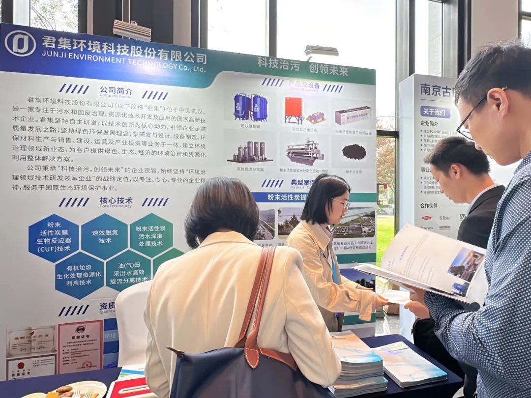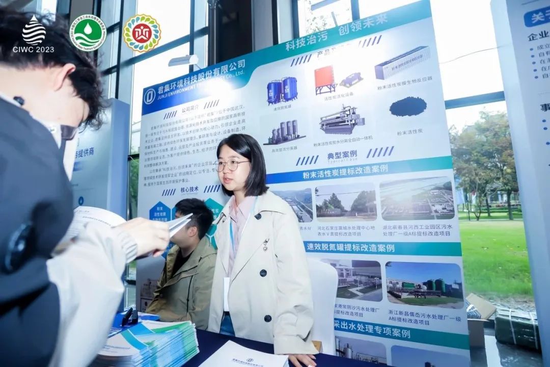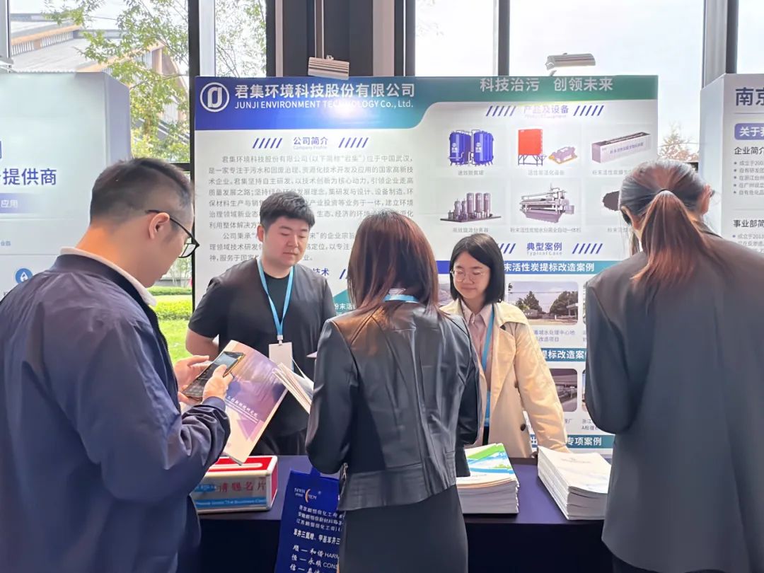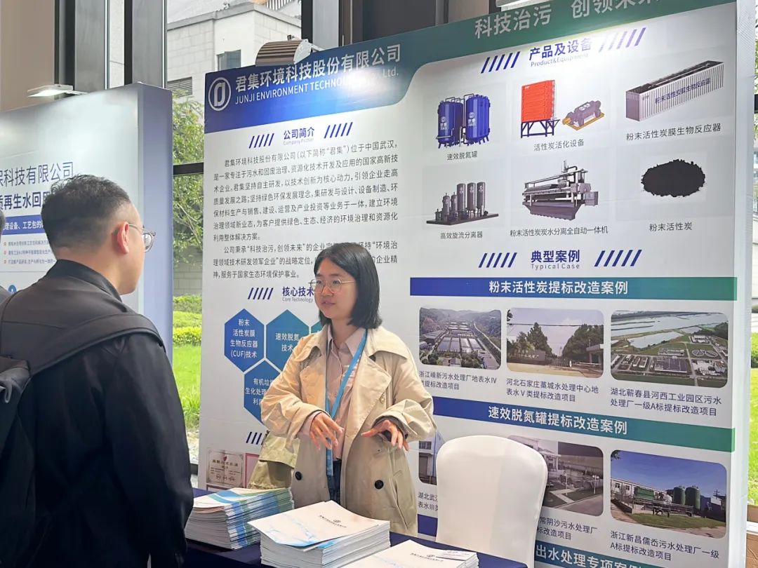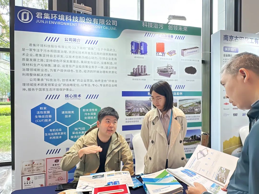 大会期间,君集市场团队细致地向参观者介绍了公司在污水深度处理、固废综合治理等方面的技术创新和积累,其中粉末活性炭污水深度处理技术、粉末活性炭活化技术、粉末活性炭膜生物反应器技术(CUF)技术、以及速效脱氮等技术受到诸多关注。