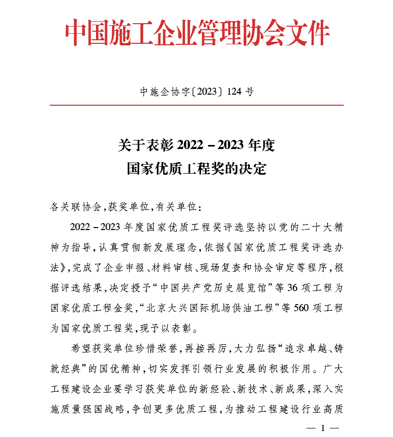 国家优质工程奖设立于1981年,是经国务院确认的我国工程建设领域设立最早,规格最高,跨行业、跨专业的国家级质量奖。