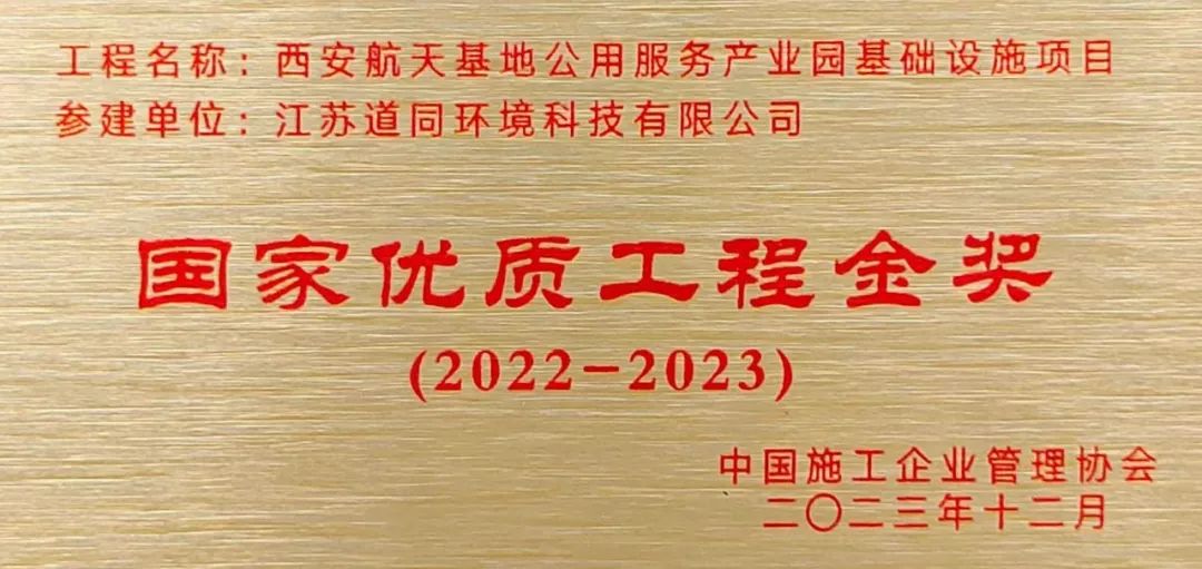 近日,中国施工企业管理协会公示了《2022-2023年度第二批国家优质工程奖候选项目名单》江苏道同环境科技有限公司作为西安航天基地用服务产业园基础设施(南、北地块)项目参建方之一榜上有名!