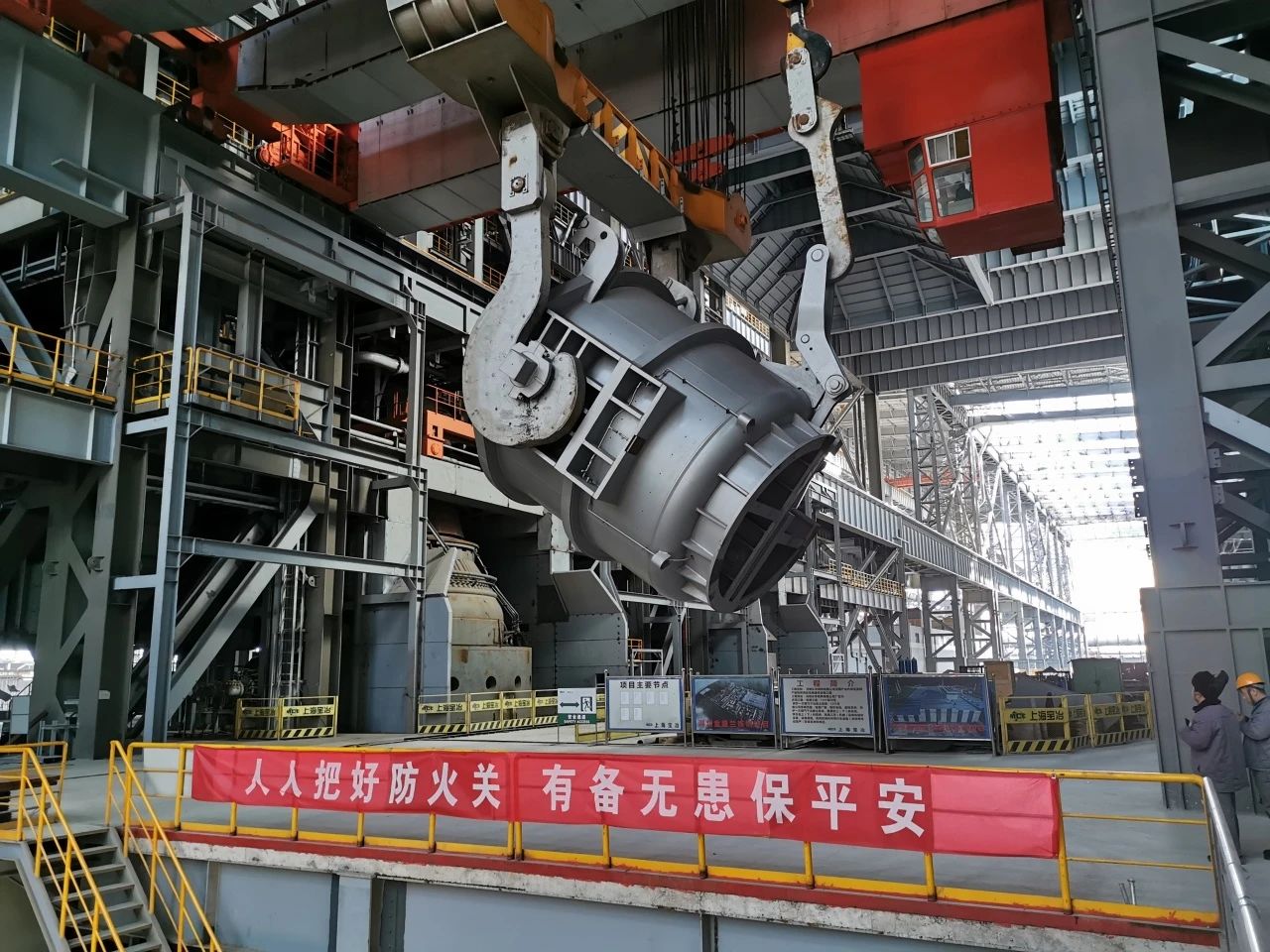 伴随着一系列难题迎刃而解,二十二冶自主研发的 “大型高效板坯连铸机综合安装技术”也应运而生,这一技术研发可以有效解决大包回转台体积、重量大,车间内天车无法直接吊装就位的技术难题。
