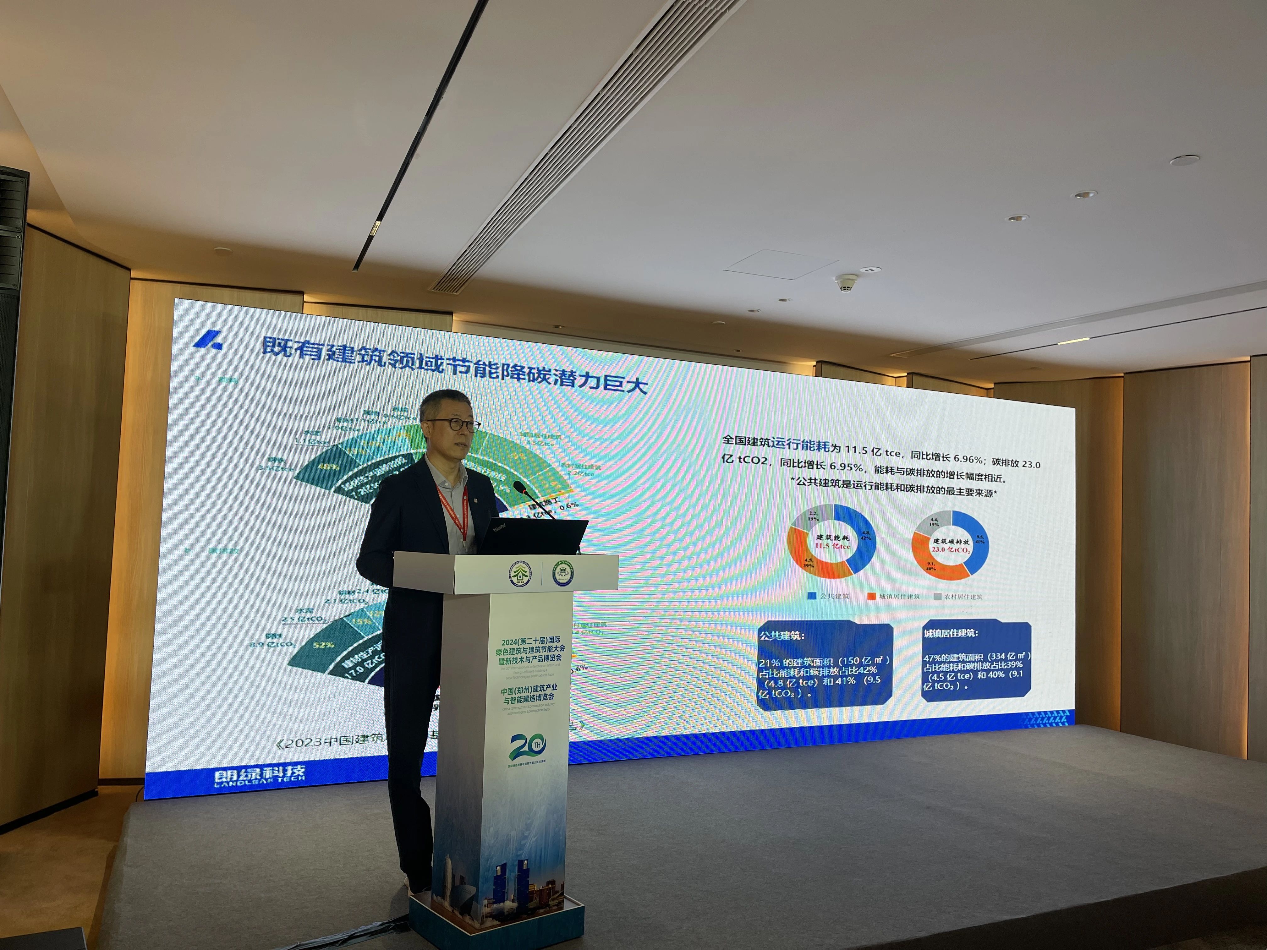 本次展会由两场全体大会,40多场专题交流会组成,来自全国的数千位代表与会。在14日举行的“既有建筑绿色改造与功能提升”主题论坛上,朗绿科技首席技术官、副总裁谢远建做了《既有建筑改造绿色技术落地实践》的主题分享。