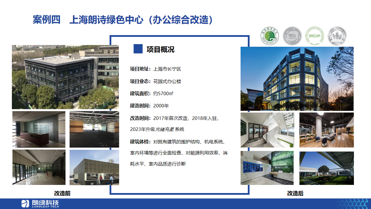 谢远建表示,多年来朗绿科技运用绿色科技综合解决方案打造了众多行业标杆案例,并和与会嘉宾分享了不同业态项目的绿色技术改造落地探索实践经验。