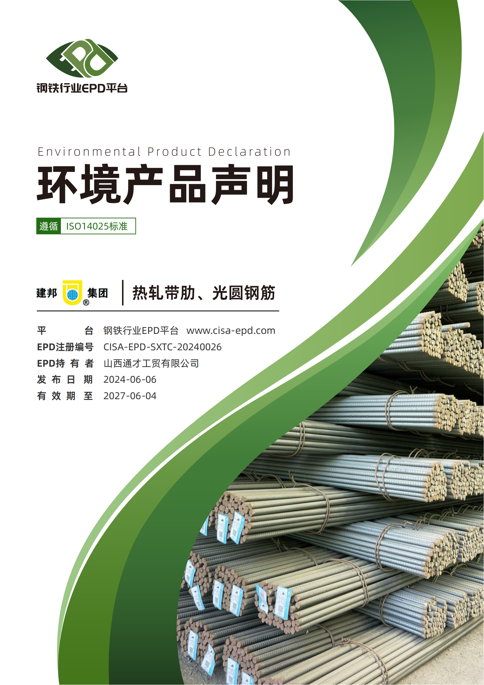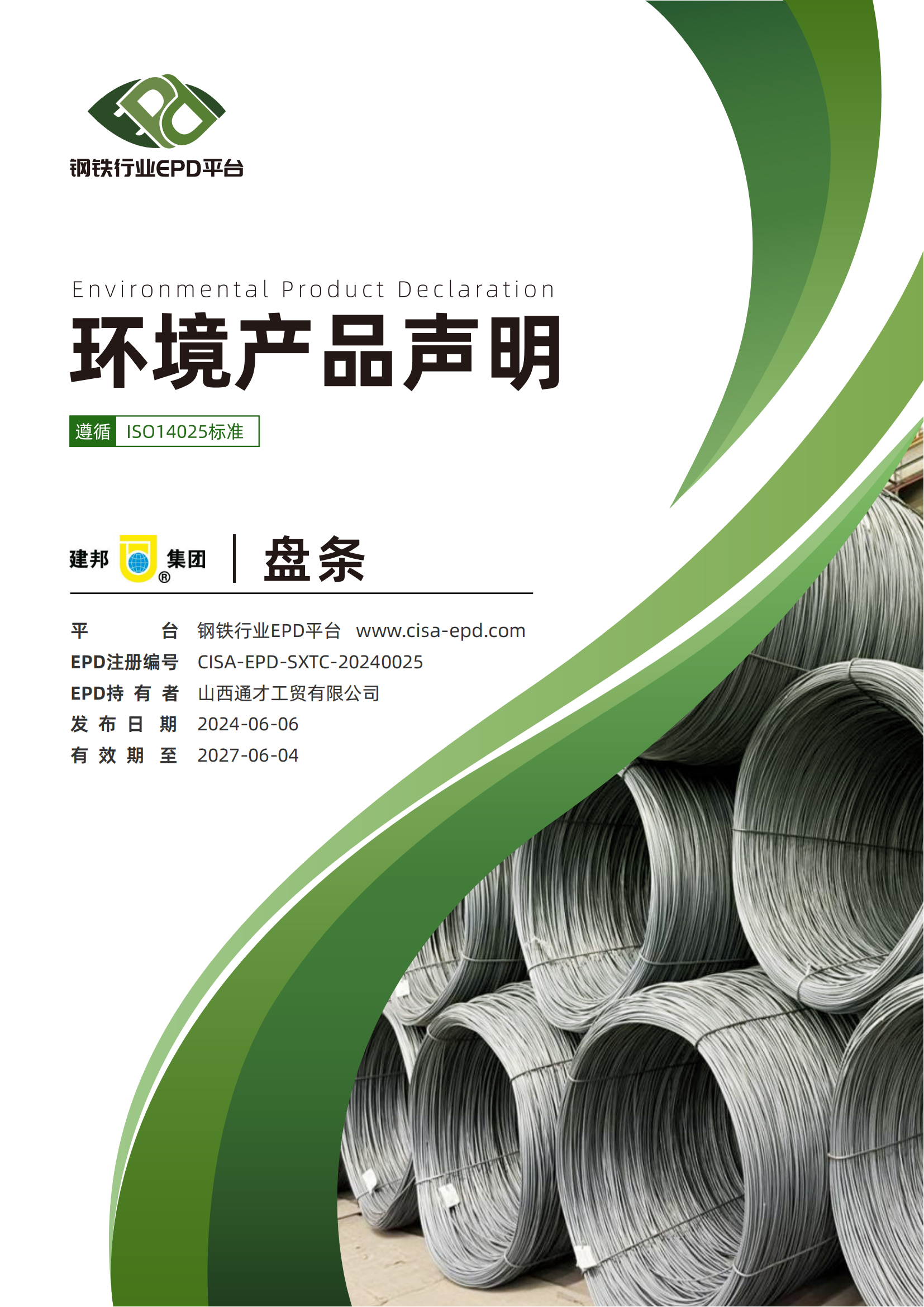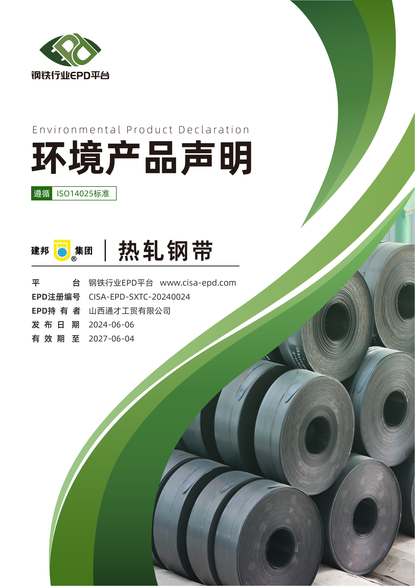 近日,建邦集团的3类产品(盘条、热轧钢带、热轧带肋、光圆钢筋)在中国钢铁工业协会钢铁行业EPD平台发布了环境产品声明(EPD)报告(以下简称EPD报告),主动披露了相关产品环境绩效信息。这是我公司积极响应我国钢铁行业低碳绿色转型的重要举措,是践行绿色、健康、可持续发展的关键行动,为助力国家“双碳”战略目标实现贡献建邦力量!