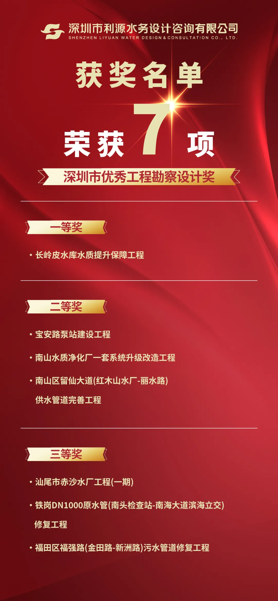 近日,深圳市勘察设计行业协会公布了第二十一届深圳市优秀工程勘察设计奖评选结果。经过各专业评审组线上初评、复评,评审专家线下终评等多轮高规格评审工作,利源公司报送的多个项目从2325个申报项目脱颖而出,一举斩获7项大奖。