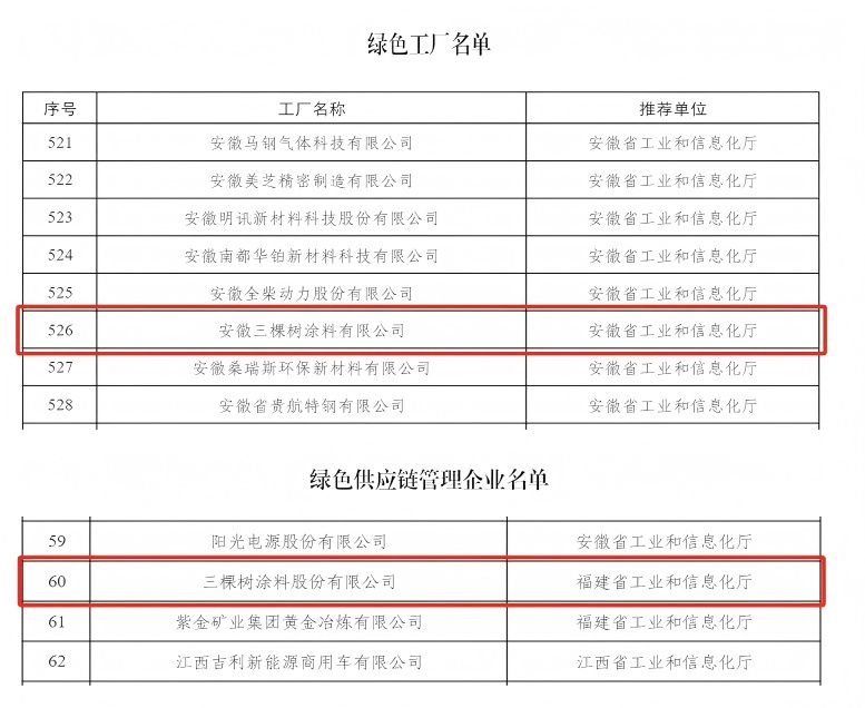 三棵树涂料股份有限公司还荣获了国家级“绿色供应链管理企业”的称号。