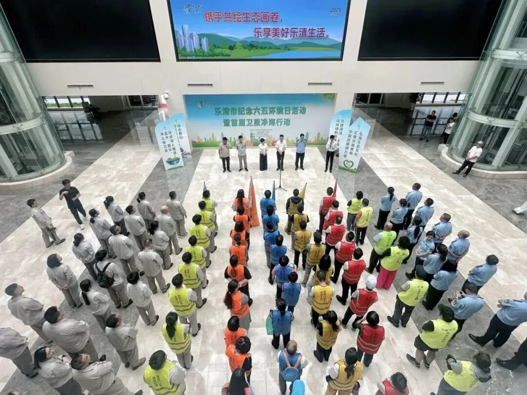 ”亲爱的朋友们,环保不是口号,而是举手投足的文明;生态不是远景,而是你我共筑的家园。让我们以今日为契机,一起做 “美丽中国” 的行动派——随手关灯、分类垃圾、守护海岸线……每一份微小的努力,都在点亮乐清的绿色未来。