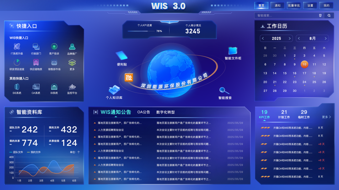 聚焦管理模式“三转变”方面,深能环保自主开发行业首套智慧管理系统WIS系统,实现生产标准化管理、贯通投资—建设—运营全生命周期数据链和业财一体化。通过打造“3+N”业务管理模块,实现业务数字化;构建数智中心,打造核心数据资产,实现数据标准化;构建敏捷高效的生产、财务管控系统,实现业财一体化,并打造赋能千行百业的数字产品包,推动数字产业化。