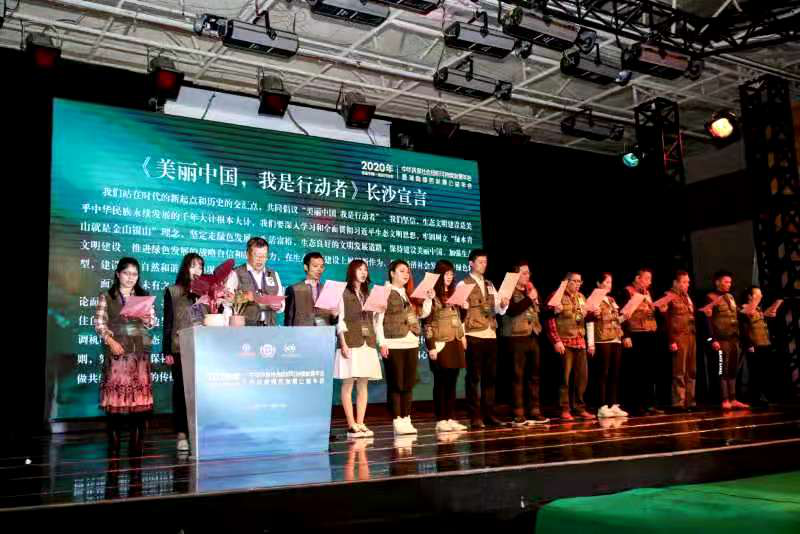 开幕式上还特别邀请了来自北京、上海、天津、陕西、内蒙古、海南、福建等15个省(区、市)的15家环保社会组织代表共同宣读“美丽中国,我是行动者”长沙宣言,号召大家要以身作则,以成功不必在我、功成必定有我的胸怀情怀,同心携手、跨界合作,做共建美丽中国的传播者、行动者、引领者。