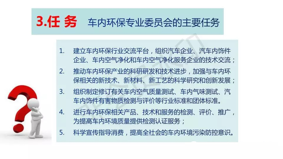 王一群:车内净化材料与净化服务后市场的发展解决新车车内环境污染问题不仅仅注意从设计、工艺和材料控制,有效的利用车内净化材料,通过车内空气净化服务,可以降低车内环境污染对健康的伤害。济南天空湛蓝节能环保服务有限公司王一群董事长介绍了他们的经验和体会。