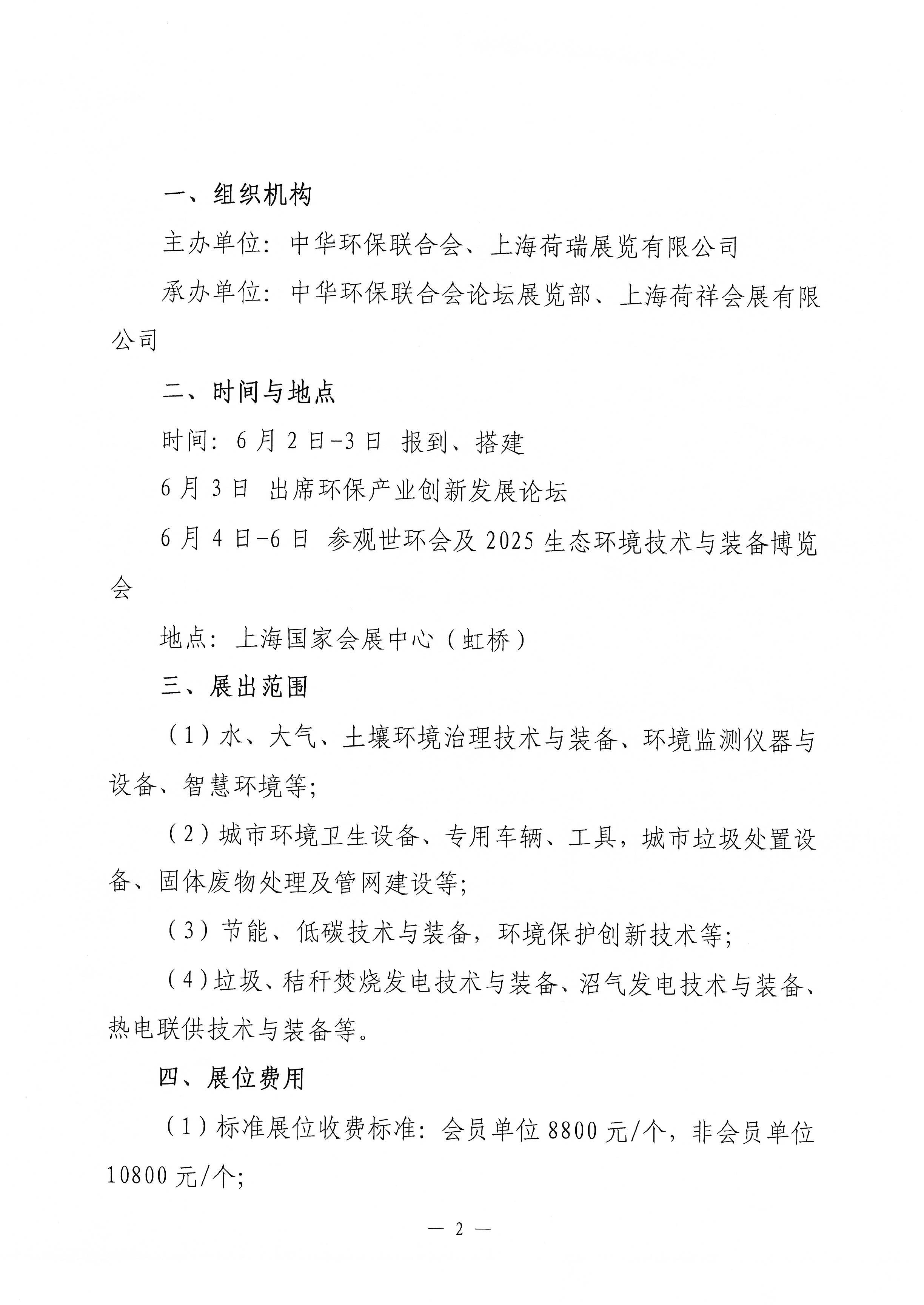 关于邀请参加2025上海“世环会”暨生态环境技术与装备博览会的函