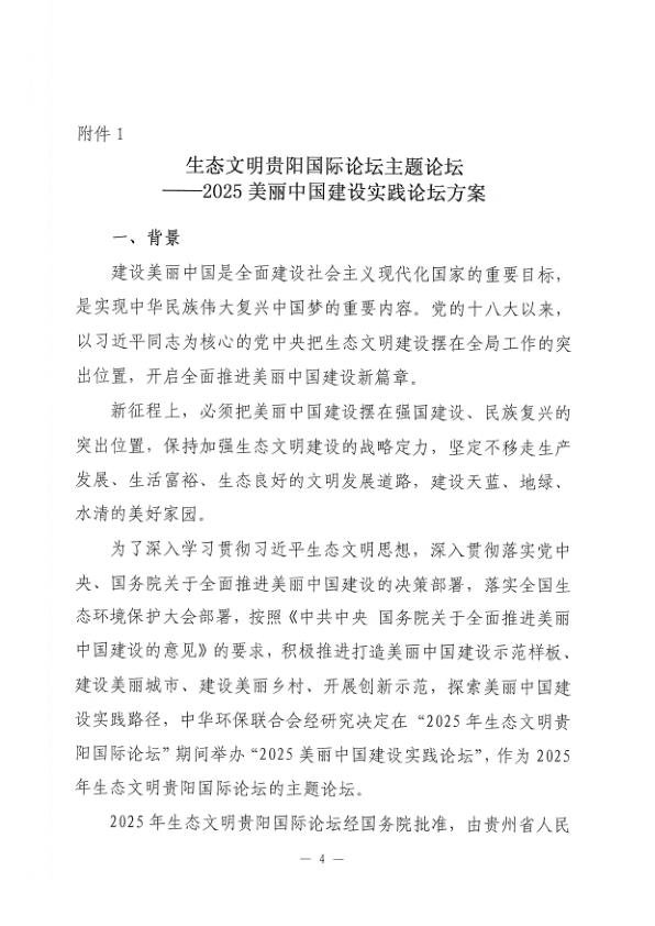 为了深入学习贯彻习近平生态文明思想,深入贯彻落实党中央、国务院关于全面推进美丽中国建设的决策部署,积极推进美丽中国建设实践,探索美丽中国建设路径,中华环保联合会拟于7月6日以生态文明贵阳国际论坛主题论坛的形式举办“2025美丽中国建设实践论坛”。