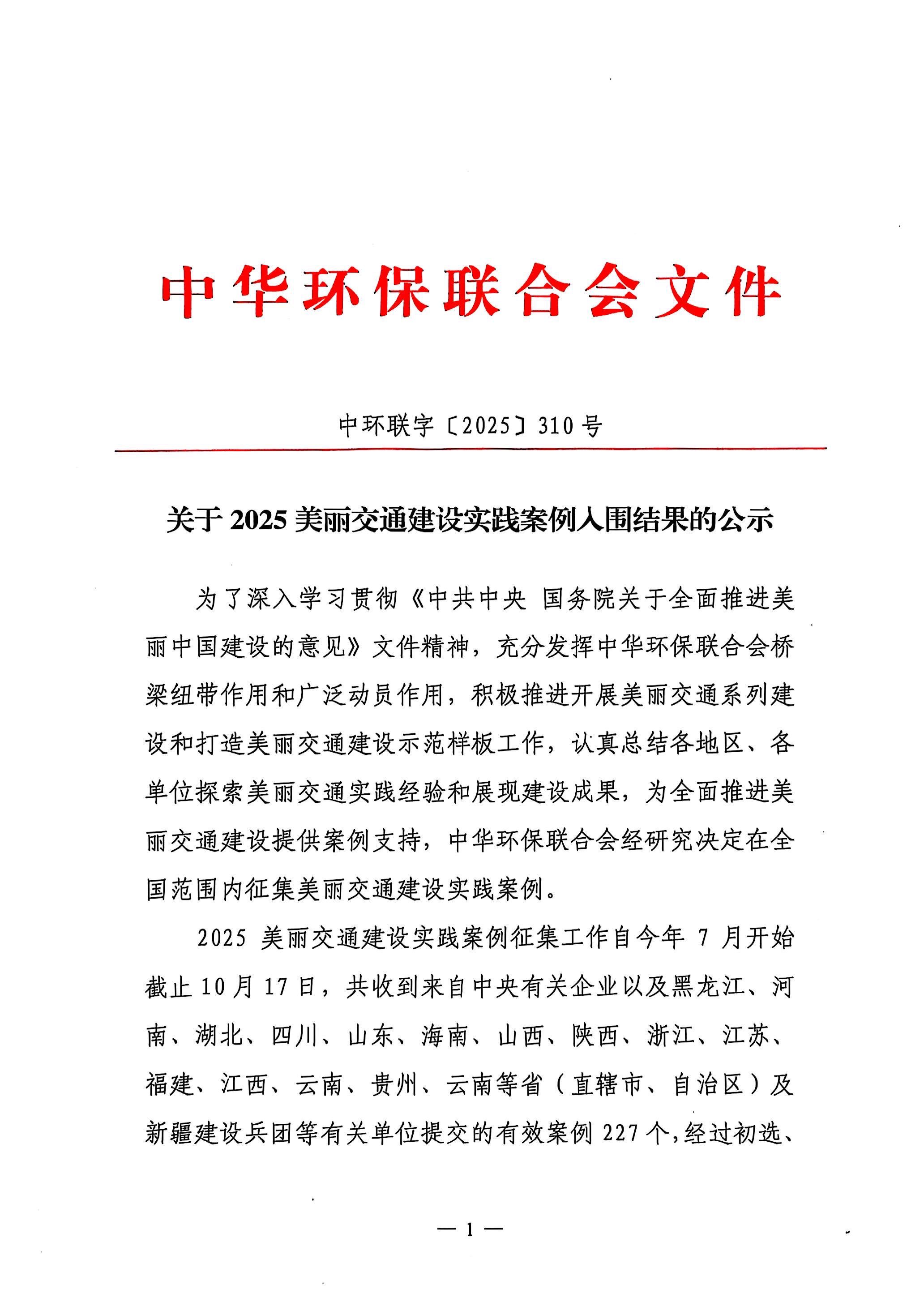 关于2025美丽交通建设实践案例入围结果的公示