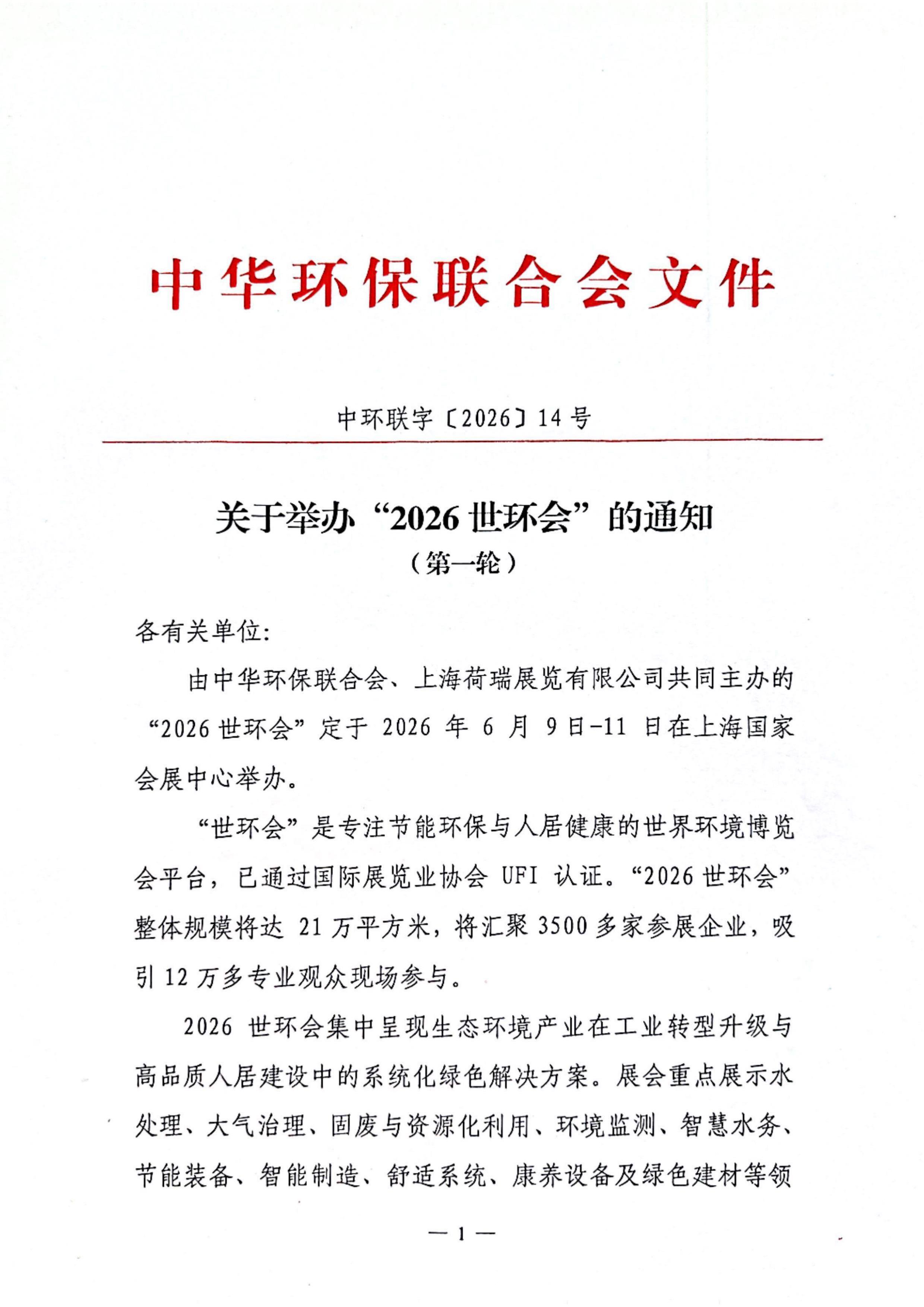 关于举办“2026世环会”的通知(第一轮)