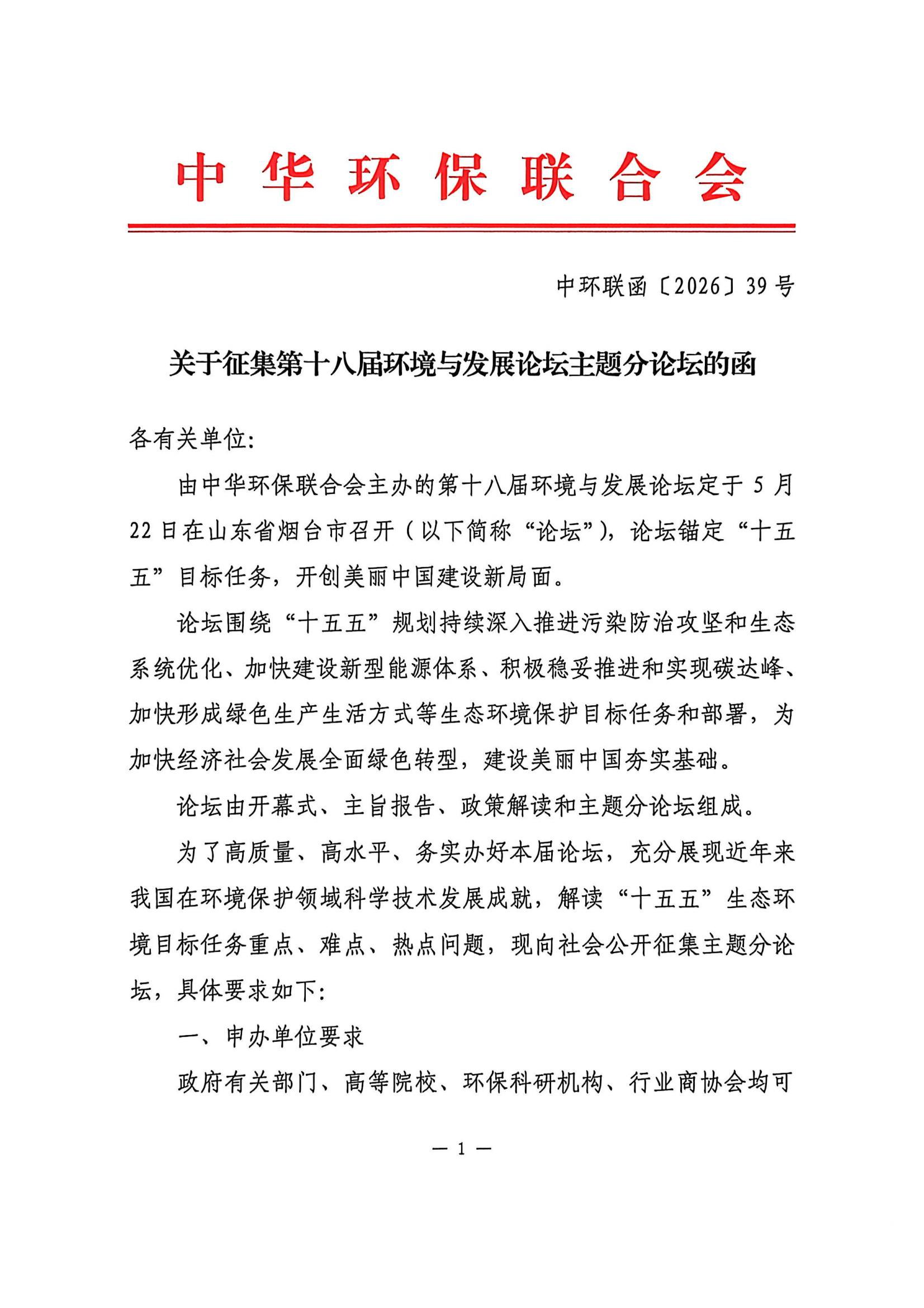 关于征集第十八届环境与发展论坛主题分论坛的函