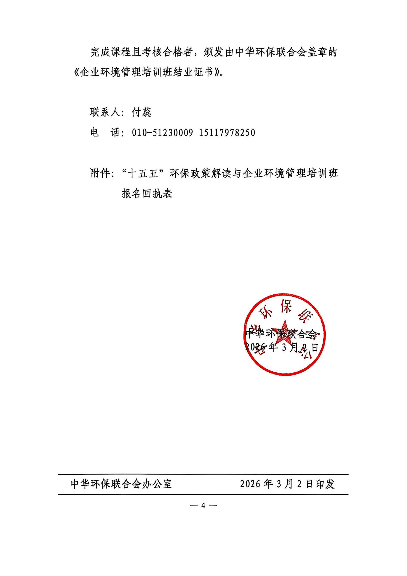 关于举办“十五五”环保政策解读与企业环境管理培训班的通知