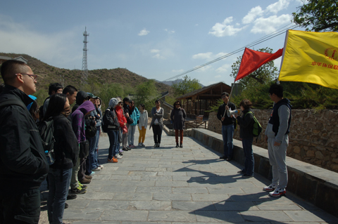 上午十点半,在村口“灵水举人村”的影壁墙下,谢玉红副秘书长向青年同志们发出了“弘扬五四精神 贡献青春力量”的倡议。《倡议书》指出:“让我们自觉肩负起时代赋予的历史使命,大力弘扬伟大的五四精神,在工作上,爱岗敬业,以奋发向上的朝气、开拓进取的锐气、争创一流的志气,更加勤奋地学习,更加扎实地工作。在生活上,珍惜拥有,快乐生活,笑对人生。在开创环保事业美好未来的征程上谱写新的青春乐章”。