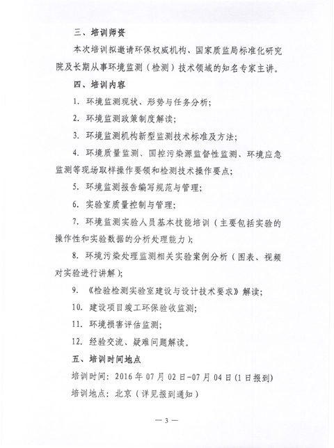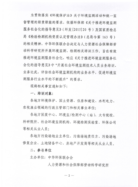 中华环保联合会关于举办《环境监测技术人员》2016年第十四期专业能力培训班的通知