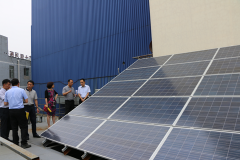 图为张永红秘书长一行参观圣火集团分布式光伏发电示范装置