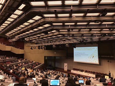 日内瓦当地时间9月24日,《关于汞的水俣公约》第一次缔约方大会于瑞士日内瓦正式开幕,会议由联合国环境署主办,瑞士政府承办。来自全世界160个国家的1200余名政府与NGO代表参加会议。瑞士环境部联邦办公室主任Marc Chardonnes、联合国环境署副执行主任IbranhimThiaw出席开幕式并致开幕词。中国政府派出包括外交部、环境保护部、国土资源部、卫生部等多个部委在内的20余名政府代表团成员出席大会并参与公约各项谈判。我会作为中国环保NGO代表参加大会,专门就我会在参与推动削减用汞与公约履约方面所做的努力与取得的成果进行宣传与分享。