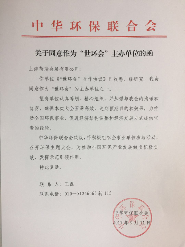 中华环保联合会与上海荷瑞会展有限公司携手打造环保领域旗舰展会—世环会
