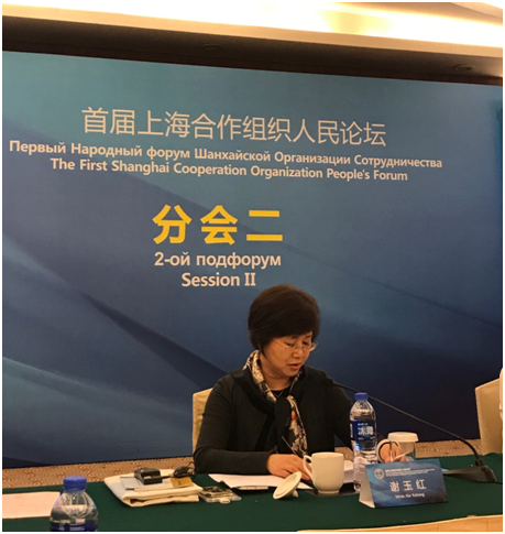 关于“推动发展战略对接、拓展区域合作”,谢玉红副秘书长指出:“加强区域民间合作,共建绿色一带一路”十分必要,上合组织与“一带一路”倡议互为机遇、互动发展,可以为“一带一路”倡议与各国发展战略对接发挥重要平台和机制支撑作用,而“一带一路”倡议的不断深化也会极大提升上合组织各成员国间的合作,为上合组织注入新动力。共建“绿色一带一路”是“一带一路”倡议中的重要内容,民间组织积极推动“一带一路”的绿色化进程至关重要。
