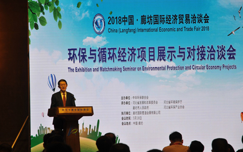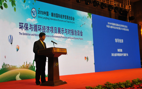 5月18日,环保与循环经济项目展示与对接洽谈会在河北省廊坊市圆满召开。本次大会由中华环保联合会主办,河北省发展和改革委员会、河北省环境保护厅、廊坊市人民政府、河北省环保产业协会承办,洽谈会开幕式由中华环保联合会秘书长张永红主持。中华环保联合会常务副主席孙晓华、河北省环境保护厅副厅长陈恩惠出席开幕式并致辞。来自国内外的知名专家学者和环保产业企业高层共计200余人参会。