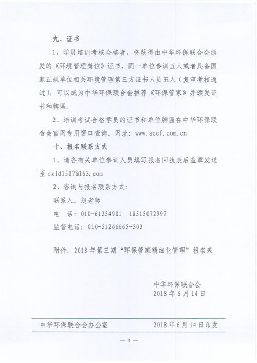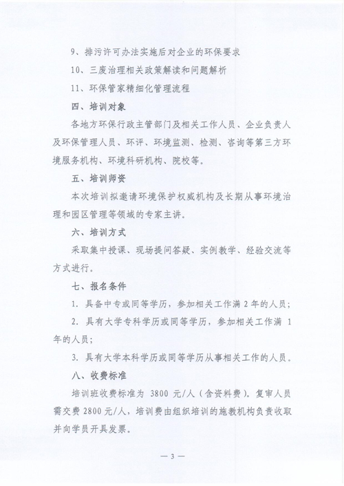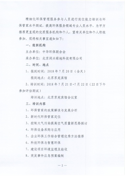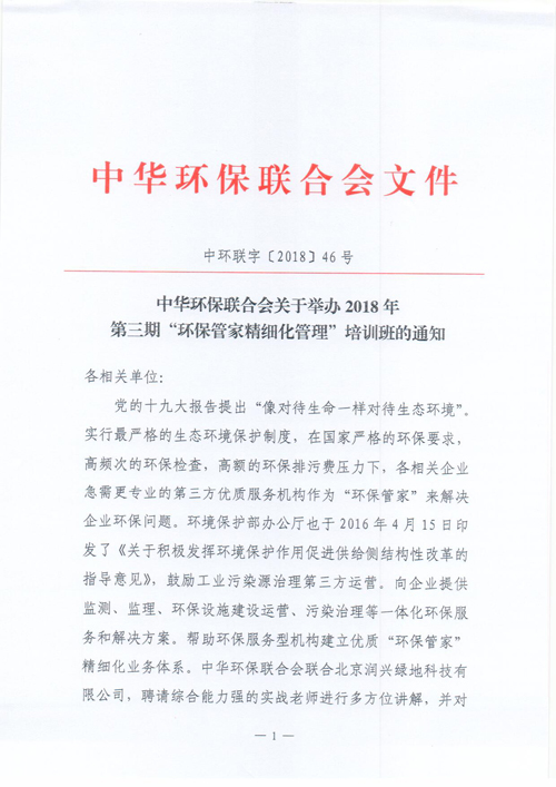 关于举办2018年第三期“环保管家精细化管理”培训班的通知