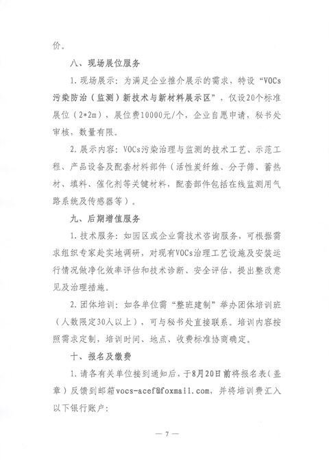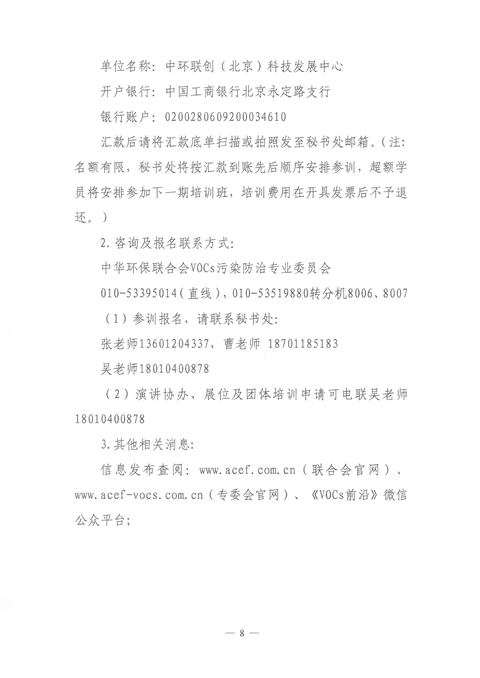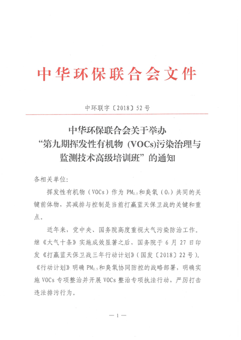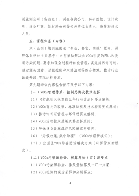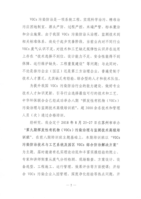 关于 举办“第九期挥发性有机物 (VOCs)污染治理与监测技术高级培训班”的通知