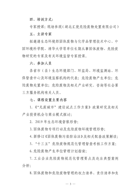关于举办“第二期危险废物规范化管理工作高级培训班”的通知