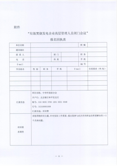 关于召开垃圾焚烧发电企业高层管理人员闭门会议邀请函