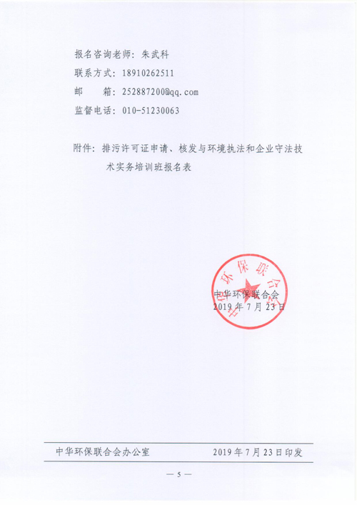 关于举办2019年第一期“排污许可证申报、核发与环境执法”和企业守法技术实务” 培训班的通知