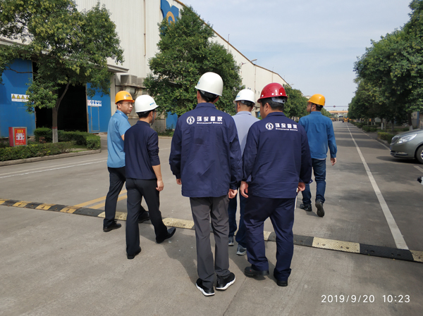 (图为专家在中远橡胶工业有限公司进行现场实地调研)