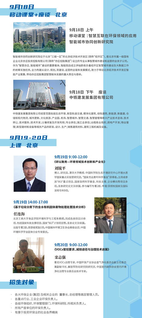 为学员提供发表意见,展示自我的舞台。打造融合地方政府、研究机构、环保行业、权威专家、投资机构的环保盛宴。