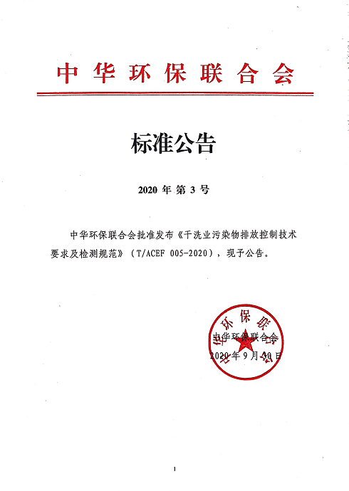 关于发布《干洗业污染物排放控制技术要求及检测规范》的公告