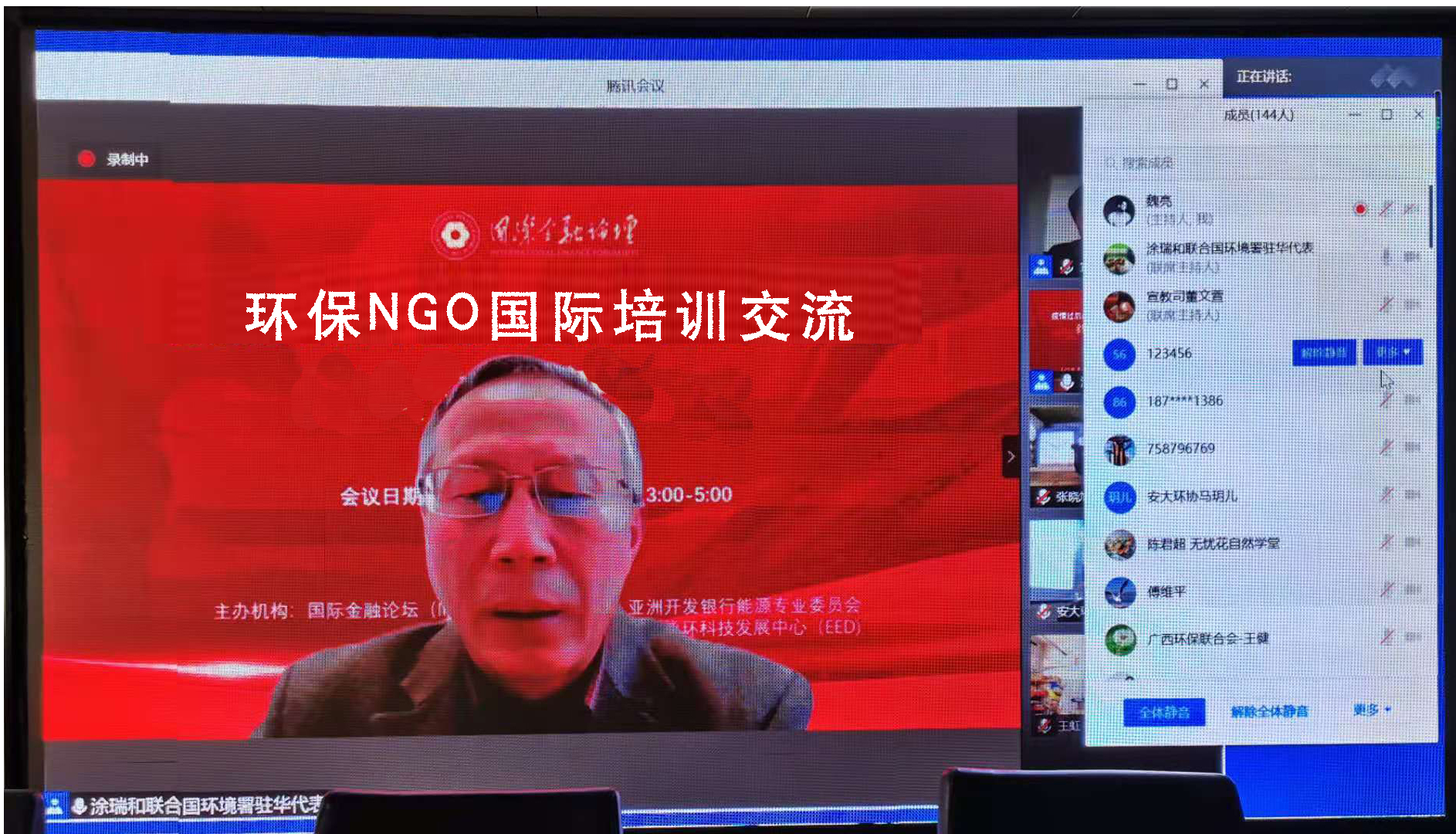 涂代表详细介绍了联合国和联合国环境署的工作职能和机构设置,他介绍,环境署与中国保持了良好、密切的关系,双方相互支持,务实合作不断推进,合作形式多样,活动丰富,成效显著。2003年环境署在中国设立了办公室,是环境署在国家层面设立的第一个办公室。据统计,2017年40个代表团来华访问,2018年62个代表团,127人次来华访问。2019年来华53个代表团,110人次,高层次官员30人次。环境署编制并发布可持续消费和生活方式转变的指南和手册,提供给政策决策者和利益相关方,作为倡导和推动这项工作的指导性公文。