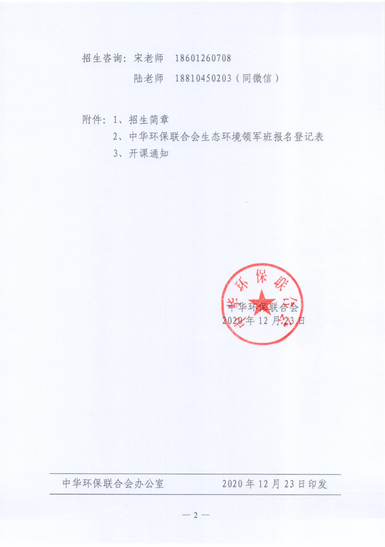 第六期中华环保联合会生态环境领军班招生通知
