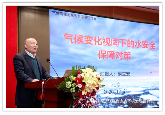 2020年12月21日,由中华环保联合会水环境治理专业委员会、重庆市科学技术研究院主办的“气候变化与水安全保障院士论坛”在北京湖北大厦召开,150多位行业专家学者、企业代表及相关领域人员出席会议。会议同步网络直播,全国各地区生态环境相关部门、科学研究院等3800余人线上参会。