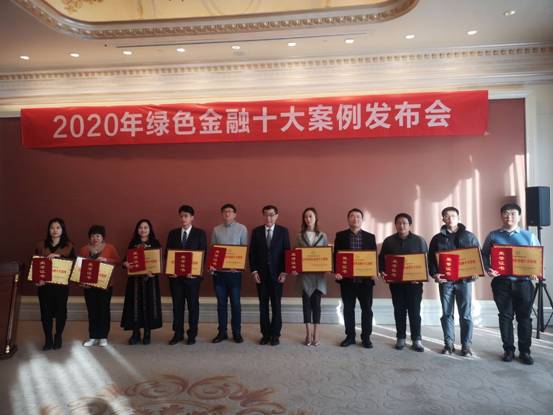 副主任委员王军生、丁志敏、冯春安为绿色金融提名案例获得者颁发荣誉证书。