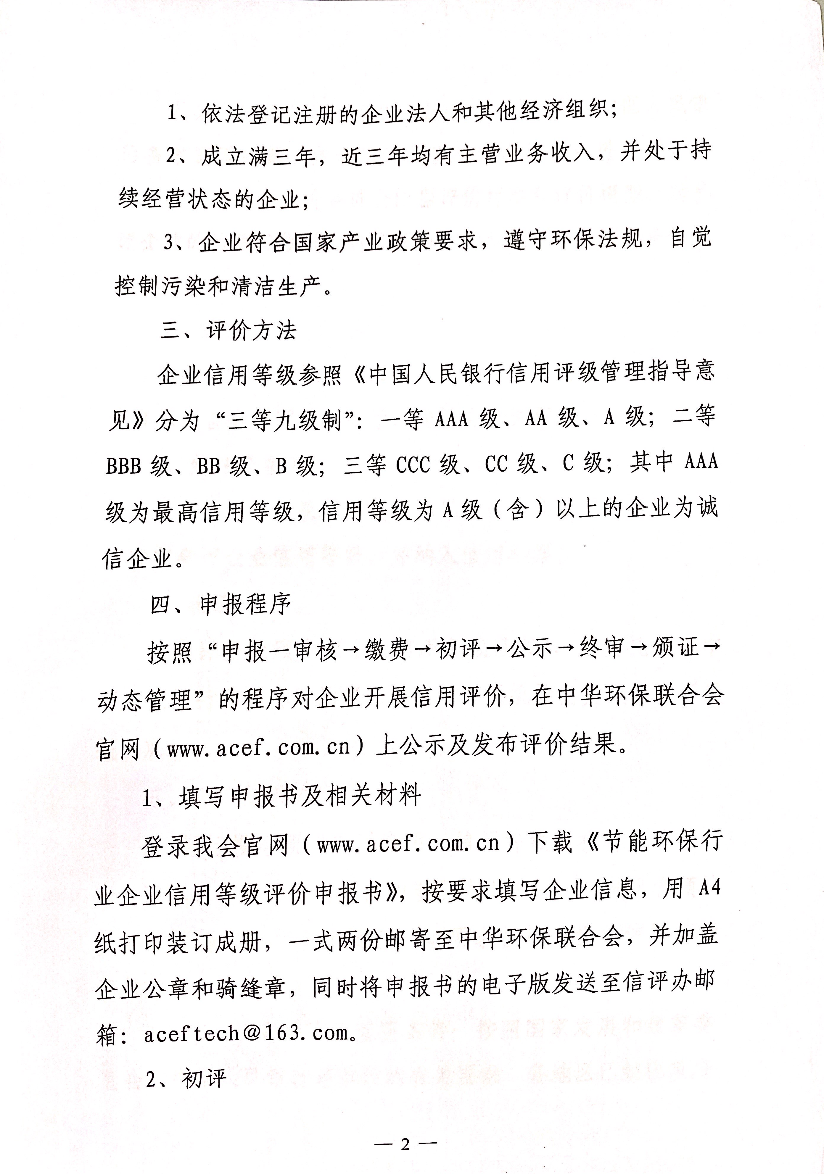 关于开展2021年全国节能环保“企业信用等级评价工作”的通知