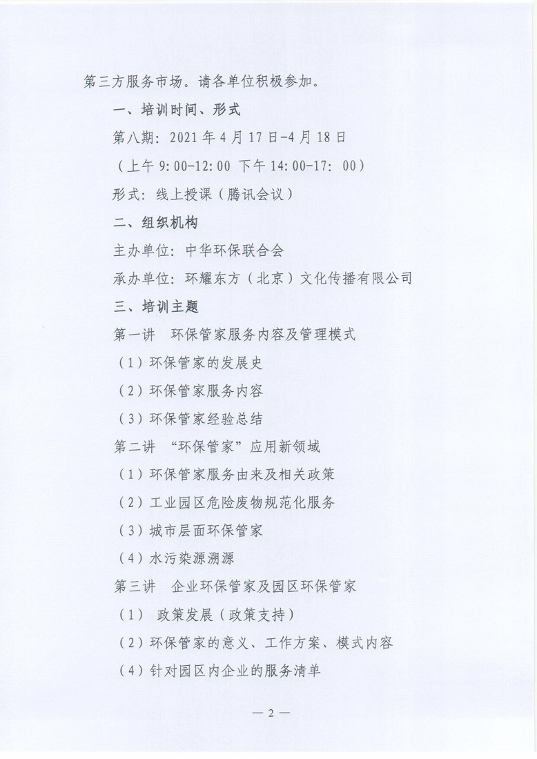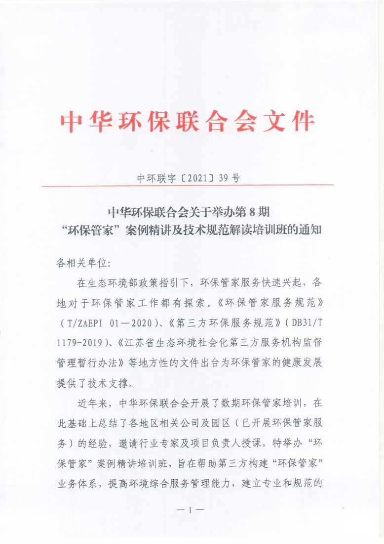 关于举办第8期“环保管家”案例精讲及技术规范解读培训班的通知
