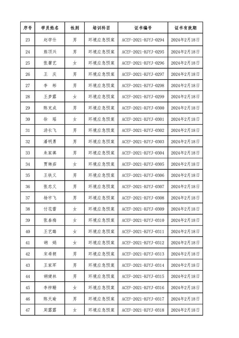 2021年第2期“环境应急预案编制及评审从业人员” 专业技术岗位人才培训合格学员名单